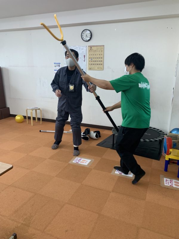 スタッフへは、さすまたの具体的な使い方や、相手との距離感等、丁寧に教えて頂きました。