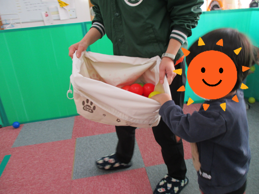 かごはら教室でも、お子さん達と一緒に、豆まきならぬ、ボールあてをして、オニ退治と福の神をよびよせました✨