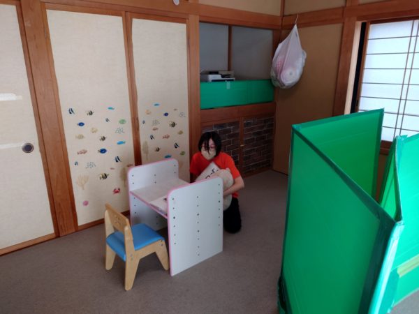 他の事業所と違い、駅前教室のお子さんの支援はひとり50分という限られた時間ですので、お子さんがいる時間は支援にあて、支援時間ではない時間帯にやらせて頂いています。