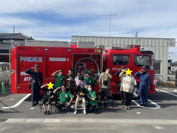 藤沢消防分署のご指導のもと、スタッフ・ご利用者ともに消火器の使用訓練も行いました。