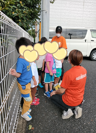 子どもたちは少し離れたところから「がんばれー!」と大きな声で応援!