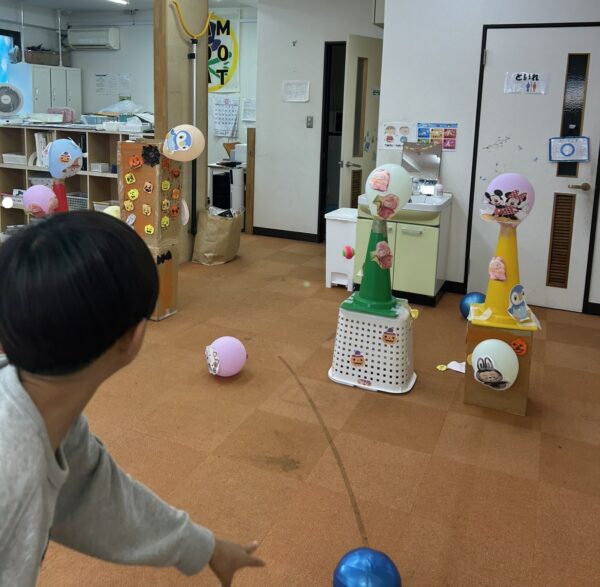 こちらはハロウィン日替わりゲームの「おばけをやっつけよう!風船割り」を行いました🚩