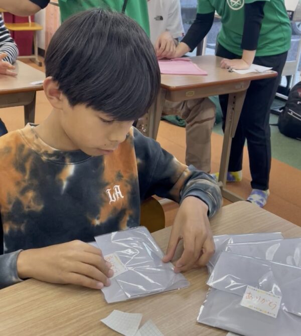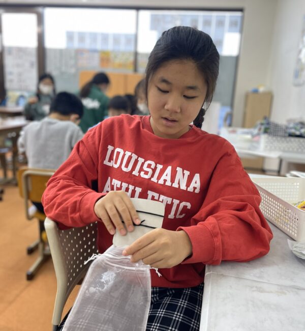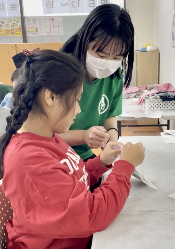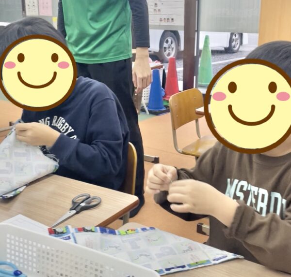 印に針をさしてなみ縫いを行いました。「授業で習ったからやり方わかる!」と学校で習ったことを教えてくれるお子さんもいました!