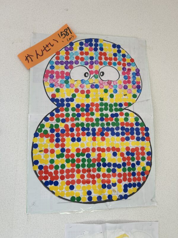 みんなで少しずつシールを貼り進め、12月20日(土)に雪だるまが完成しました!