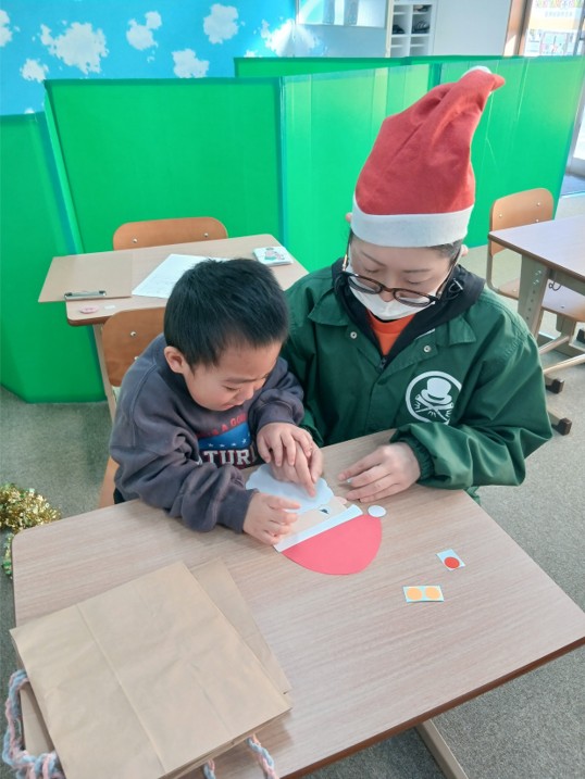 工作の時に作ったサンタさんバックに入れて、持ち帰ってもらいました!