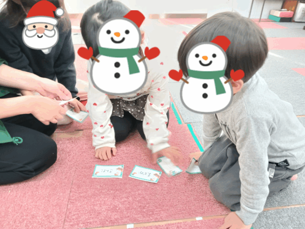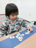 お子さんに合わせて、お友達同士でチームになり、協力してカードを探す取り組みも行いました。