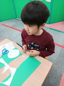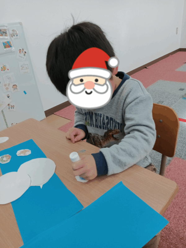 いつもより工程が多くてちょっぴり大変でしたが、これまでの「おいすに座ってやってみよう!」の活動で積み上げてきた、お話を聞いて作業を進めることや、はさみやのりなどの道具の扱い方、着席を保持することが十分に発揮された時間でもありました✨