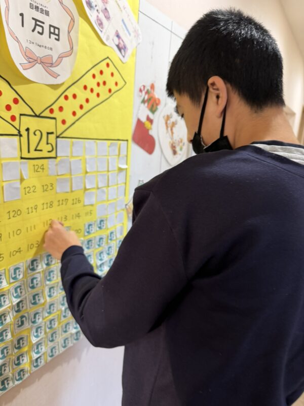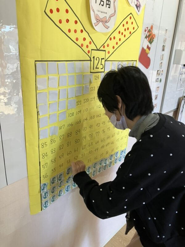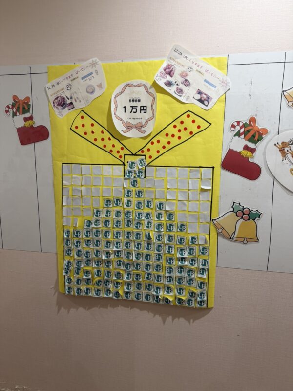 1袋いっぱいになるごとに、プレゼントの用紙にシールを1枚貼っていきます。