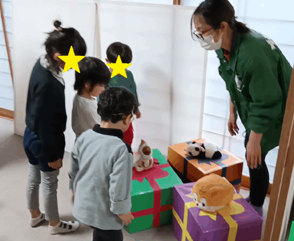 「あれ?後ろを見て!プレゼントが届いてるよ!」