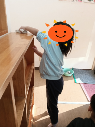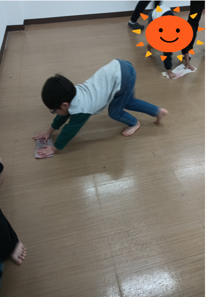 膝をつかずにじょうずに雑巾がけをしてくれました。