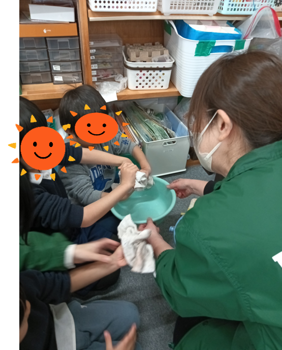 雑巾も上手に絞って指導員のお手伝いをしてくれました。