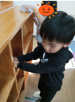 「ここもよごれてるね」とお友達と話しながら真剣にお掃除を進めてくれました。