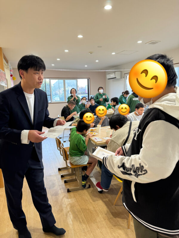 いつもより豪華なおやつを囲みながら、有限会社エイミの代表取締役が、皆さんの前で直接K兄さんを表彰しました。