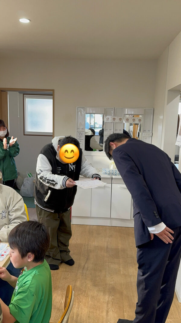 本日の表彰式は、お隣の放課後ルームバンブーハットのお子さん達との合同でのおやつの時間に行いました。