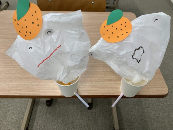 作った後にストローで膨らませて遊びながら、発語にも繋がる呼吸の調整の練習☆