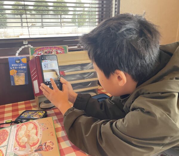 QRコードから注文を進めます。「〇〇さんは何がいいかな?」「僕はこれにしようかな~」と友達同士でやりとりをして決めていました。