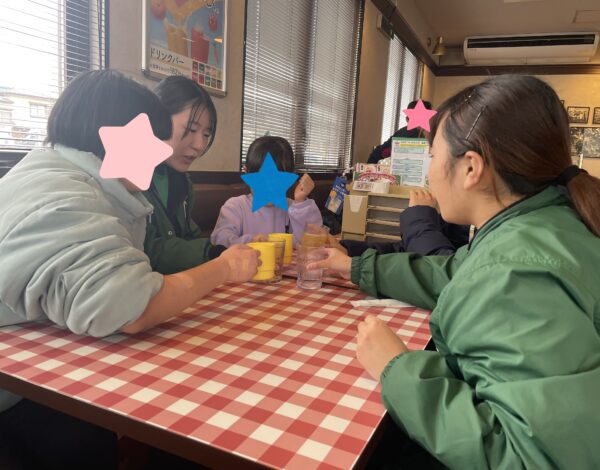 「みんな店員さんとお話ができるように練習したのにごめん!タッチパネル注文だった💧」と指導員が言うと「先生大丈夫ですよ、僕たち出来ますから👓」とお子さんが言ってくれました。