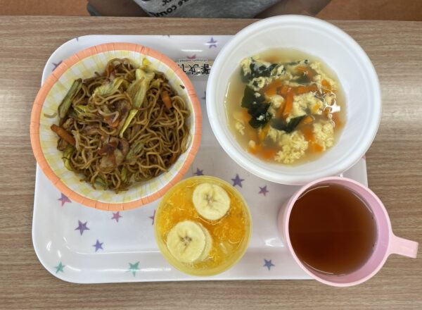 メニューは「たまごスープ」「焼きそば」「フルーツポンチ」の3品です。