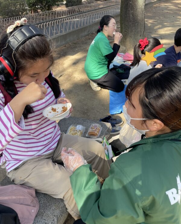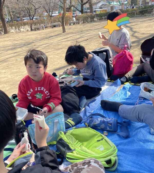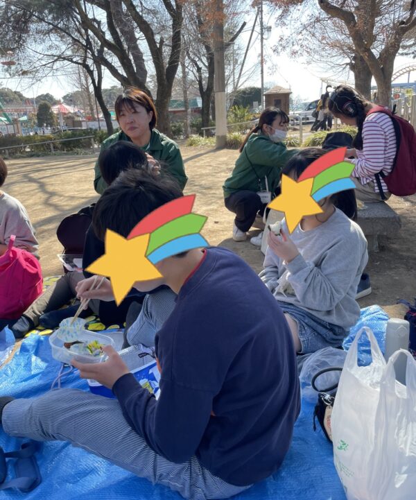 外で食べるお弁当は特別で、「おいしいね!」という声や笑顔がたくさん見られました😋