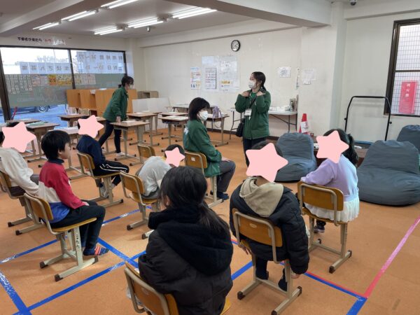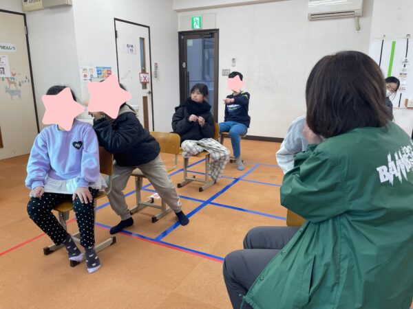 本日の活動では、子どもたちと一緒に「伝言ゲーム」を行いました。