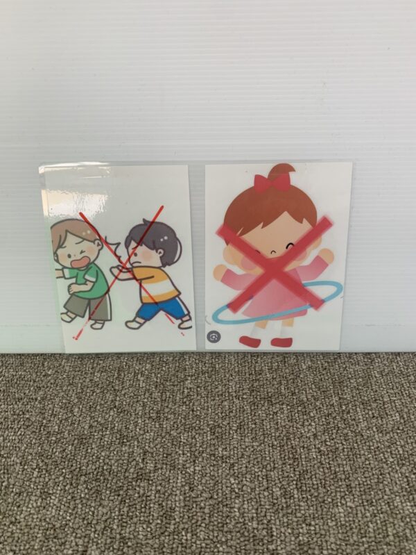 ルールは言葉で伝えるだけでなくこのようなイラストで提示したり、指導員が見本を見せたりしながら誰でもわかるようにしていきます(*^_^*)