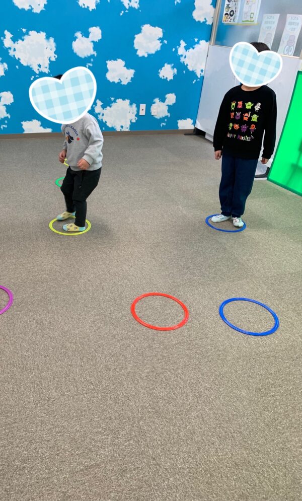今月の集団遊びではでは、フープを使って陣地取りゲームをしました🐇