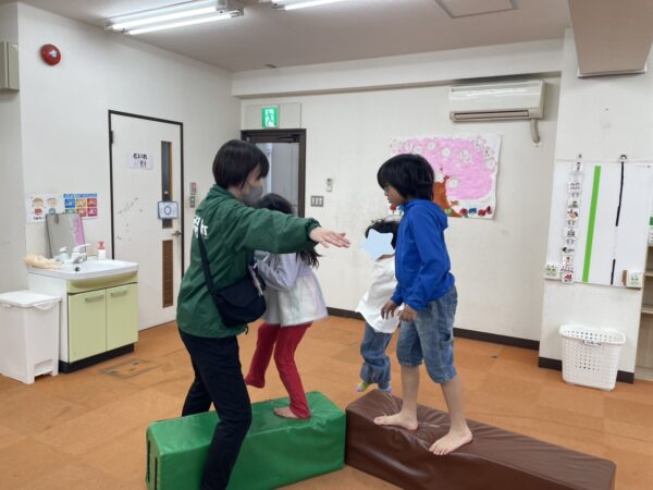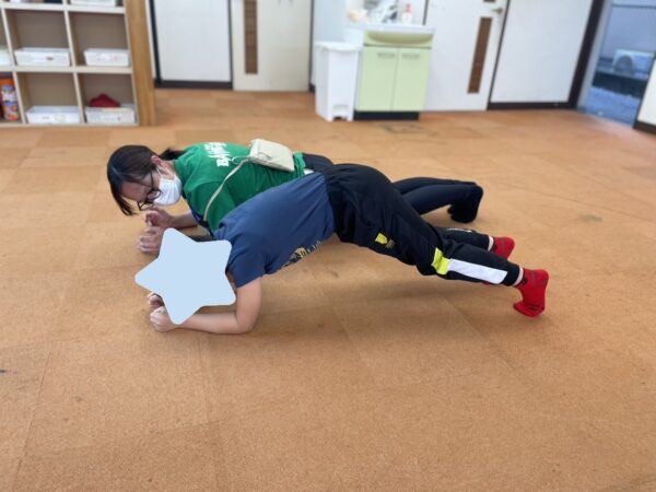こうしたお子さんの様子に対して、体幹トレーニングや簡単な運動を取り入れながら支援を行っています。