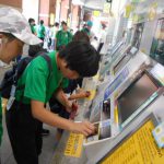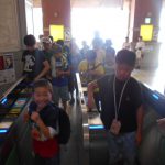 さて、いよいよ電車に乗ります。改札も全員自分で切符を入れたり取ったり。