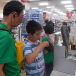 お昼の買い出しは定番のベイシア川本店さんへ。おはぎ作りの食材も子どもたちに買ってもらいます。
